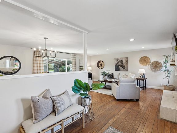 Welcome Home! This fabulous remodeled single-story residence boasts 3 bedrooms and 2 baths, encompassing a generous 1,570 square feet on a spacious .21-acre lot. The functional floor plan features a large living room with a charming fireplace and custom mantle, creating a warm and inviting atmosphere. The spacious dining area flows seamlessly into a chef's kitchen, perfect for culinary enthusiasts. Step outside to the lovely covered patio, ideal for al fresco dining or enjoying a morning coffee or evening glass of wine while entertaining friends and family. With ample room for a pool or a vegetable garden, this home offers endless possibilities! Newly painted interior. Leased solar for added electrical savings. Located in a great commute spot, this property is an incredible value that won't last long!