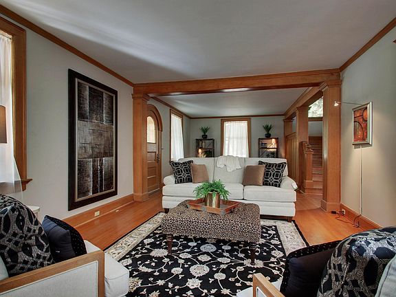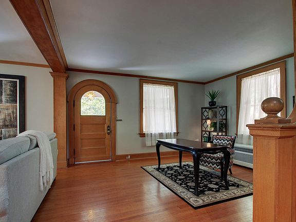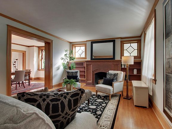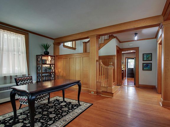 This craftsman style historical brick home with early prairie influence was built by Ernest Wood, a well-known Quincy architect, in 1906 and has been featured in architectural home tours. Graced by quarter-sawn oak woodwork, an arched front doorway, and a wraparound porch, this house has so much to offer. The kitchen underwent a complete remodel recently with custom cherry cabinets, granite countertops, and is open to a new family room. The laundry has been relocated to the second floor. The third floor is large and contains a small kitchen area with a refrigerator (other) and a very nice full bath. For safety, a special egress window was installed that provides easy exit if necessary. Zoned heating and cooling. The lovely garden has a small pond. The driveway has two entrances, one on 18th and one on Hampshire.