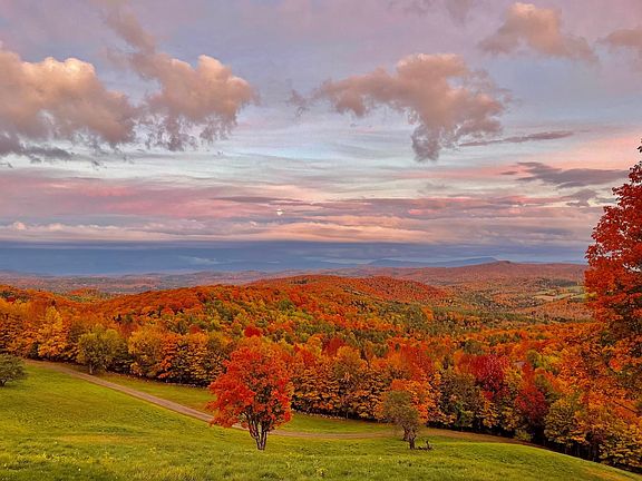 How might you treasure 100 pristine acres in Vermont? Welcome to a property unlike any other where a driveway twists through pasture and forest and ascends to the summit of a hill above 2,000 feet. From the summit, the world seems to look back at you as you almost feel like you are floating in the clouds. Relax, be still, let your eyes graze over the summits of New Hampshire’s White Mountains, even the summit of Mount Washington can be seen on a clear day. The sun rises over these mountains and the first rays filter through the long, rectangular windows of the handsome mountain cottage built in 2016. Meals can be enjoyed outside at the massive granite table and food can be cooked over the open flames of the stone grilling-station with a staircase that leads back to the chalet. Sunsets electrify the evening sky over the views of the Green Mountains with a clear shot to Killington. Trails, wide and narrow, for recreation and discovery have been created and maintained throughout the maple forest with stone fireplaces and magnificent rock outcroppings. The land has been maintained diligently to bring out all its wonder and charm. Yet this is not just a piece of property; it is a different world––an entry into a space that is sure to awaken contemplation and reflection as the beauty and fairy tale like enchantment of nature settles into your heart and soul.