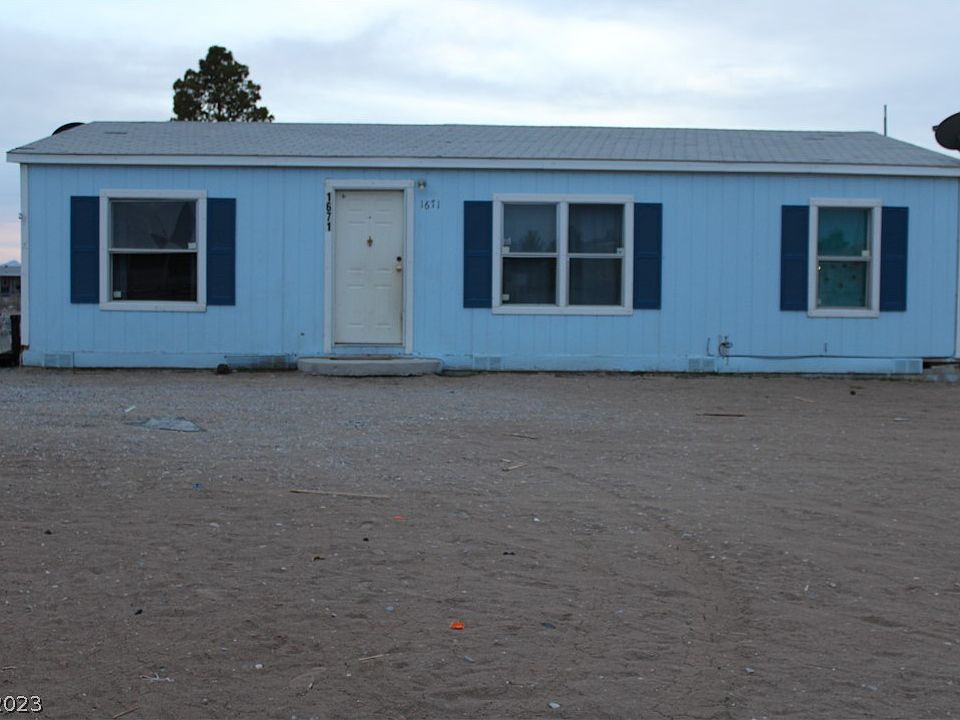 This 1000+ sq foot home with a 2 car garage on over an acre on the Southside, the commute is a shorter to Las Vegas!! With some TLC the 3 Bedroom 2 bathroom has great potential. The Primary room is on its own side of the home has a suite with two sinks, extra storage and a soaking tub. The kitchen has a lot of cabinets and countertop space. The laundry room is attached to the kitchen with access to the back yard. The two spare rooms are the same size to each other with a linen closet just out side of the bathroom. Property comes with new well pressure tank bladder and pump, furnace system, also water heater has been replace within the last few years. With a little TLC this home could be yours.
