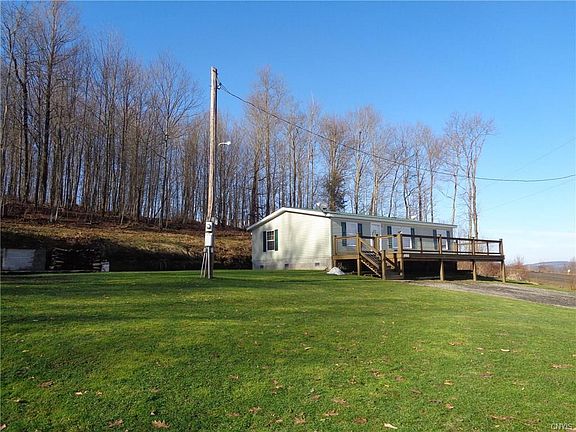 First floor country living situated on 5 1/2 acres with awesome views from the huge gated deck. Open floor plan with built in shelves in living room, lots of cabinets in the kitchen, master bedroom and bath, plus two other bedrooms and a nice mudroom/storage room. Patio with fire pit, small garage plus sheds, nice yard area plus woods. See for yourself all this great home has to offer!