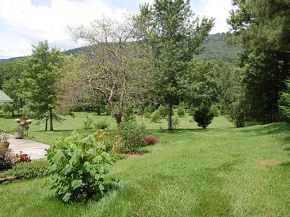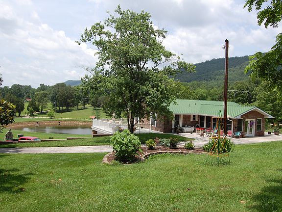 Country style living on 8.6 acres w/ large spring fed stocked pond & walking path all the way around that leads to another small pond/another spring in the back. Pear trees, apple trees and blueberry bushes grace this spacious property. Chicken coop stays. This basement ranch style home has an open concept w/ Rosewood hardwood floors, 2 Crab Orchard stone fireplaces(1 w/gas logs & 1 wood burner)Granite counters/flooring in the kitchen with step-in pantry. A 600SF heated/cooled sunroom just off the kitchen.Drive around to the kitchen entry to unload groceries.Office/BR3 off dining rm.Family room in basement with wkshop area and extra storage in the unfinished areas.Balcony w/ pond & mtnside views to enjoy.2 large bldgs (30x60 & 40x50)1 has 3 phase power/elec/high bay doors. Call today!