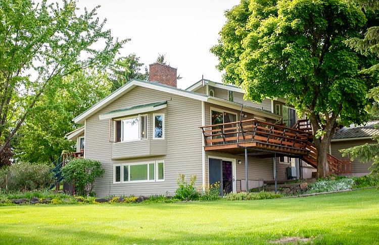 Beautiful, well maintained 2800+ square foot custom built home with gorgeous view near Palouse Washington with acreage for small hobby farm including 2 large storage buildings, a shop and 2 grain bins.