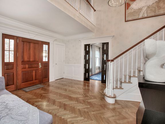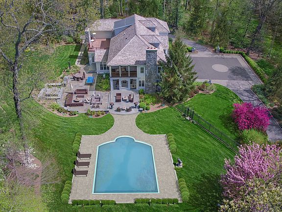 VERY HIGH-END CUSTOM FINISHES WITH OVER $1.5M IN ENHANCEMENTS THROUGHOUT THE HOME. Custom tailored stone & shingle Georgian with elegant entertaining spaces and modern amenities desired for todays living. The interior has been professionally decorated and includes many stylish finishing upgrades. This home has an exceptional flow with 6 bedrooms including the luxurious master suite with spa bath, gas fireplace and covered balcony, formal dining room with wetbar, formal living/billiards room, stone-lined game room with marble bar, kitchen/great room combination with adjacent breakfast room. The exterior of the property includes mature landscaping, stone sitting walls, bluestone patio with fire pit, spa and built-in BBQ. Room for everyone with an upstairs bonus room and finished lower level with wine cellar. Full house generator, driveway sensor and rear entry gate, ice maker in bar, heated path to outdoor spa and fenced yard. Chic & unique.