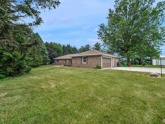 Attractive all brick 3 bdrms, 3 full baths ranch situated on a Scenic 3.78 acre lot with many beautiful pine & other assorted trees. Large eat-in fully appliance Kitchen, large Liv. Rm. Could accommodate formal dining area w/ Bow window & large picture window. Owner’s suite features 9’ walk-in closet. Tile entry features guest Closet. Separate Laundry Rm w/washer & dryer, double closet adjacent to full bath. 2 car attached & heated garage and a heated 38’x48’ Pole Building w/3 overhead doors ideal for workshop or storage. All of this just waiting for your decorating touches!