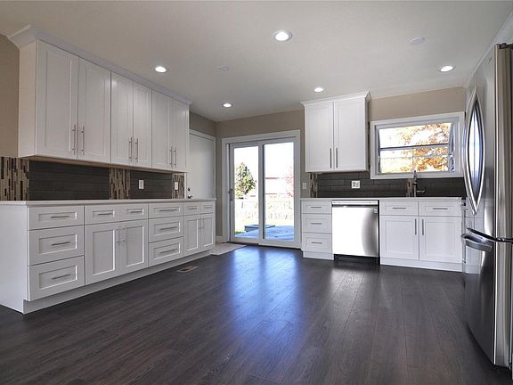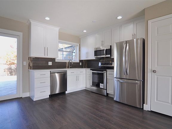 Welcome to this updated family home in established Aurora Highlands. Beautiful lot and yard with mature landscaping. Gorgeous brand new kitchen with quartz counters, spacious soft-close cabinets, stainless-steel appliances and laminate flooring. Family room includes an amazing exposed brick wall and hearth with wood-burning stove. Just off the family room is a bedroom and bathroom/laundry room, perfect for guests. Upper level features the master bedroom with walk-in closet and access to the upper deck, full bath, and additional bedroom with walk-in closet. Don't miss this opportunity - schedule your showing today!