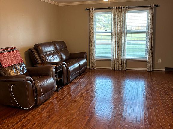 Check out this brick ranch and cool outbuildings/garage! This home sits just outside of the city limits, North of K's Creek golf course. Many updates include: resurfaced the ceilings, ridding them of "popcorn ceilings", interior completely painted, added tasteful crown molding, opened up the kitchen to the dining room, hot water heater, dishwasher, hardware, recessed lighting, back splash, garbage disposal, and more! The hardwood floors are classy and updates nicely done. Now lets go outside, the detached garage, one side with the electric garage door can fit at least 2 cars! Then the other side has a large sliding manual door that would store all kinds of this, like a boat, camper, ATV's etc, endless possibilities! The other outbuilding is heated and cooled, lots of workshop space, and a walk in safe! Then there is the she shed, gorgeous sunsets from the back yard, so tranquil.