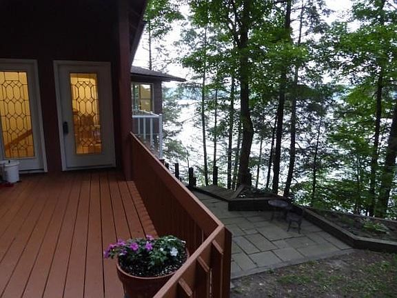Year- round 4 bedroom 2 bath contemporary home w/ redwood & cedar siding, & low- E fiberglass windows. This home is loaded w/ interesting independent features including a cantilever master bedroom that brings together the sky, lake, and forest. Large 85-foot dock, boat hoist, beachside storage shed/ changing room with electricity, barbecue w/ 4 ft stainless steel grille, & a gentle slope into the water. Situated on a 2.38 acre lot w/ ABSOLUTE privacy, beautiful lawns, woods, gorge, stream, & an impressive 450 feet of Cayuga Lake frontage. Taughannock Falls is literally right across the street!