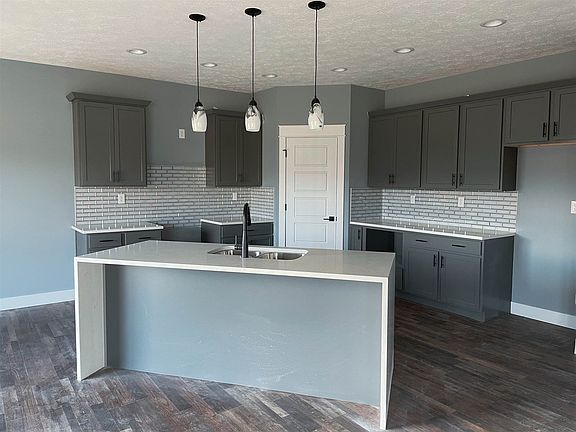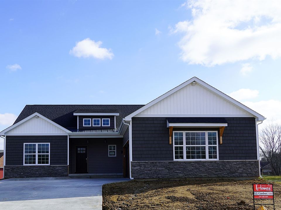 Beautiful new 3 bedroom 2 bath ranch home by G.J. Gardner Homes. Large master suite with trayed ceiling, custom walk-in closet system and beautiful walk-in shower. Laundry room w/ tub. Quartz Waterfall custom island in the kitchen. Kitchen features a large walk-in pantry and Beveled ice subway tile. Lighting features include ceiling fans and modern retro black fixtures. Bath and Kitchen fixtures are black. This home is built on a conditioned crawl space for added comfort and property value. Home is 1936 square feet and garage is 570 square feet. TSC School Corp. Home is fully covered by a 2-10 Home Warranty. Yard will be finished to Three Meadows standard of front sod, back and sides seed/straw, (2) trees and approx. (5) bushes.