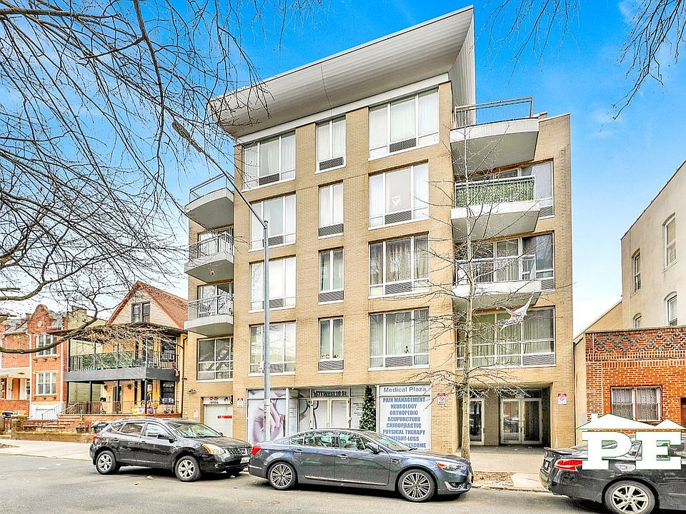 Bright and airy 2 Bedroom 2 Bathroom Condo for sale in Gravesend! Located on the 5th Floor of a pet-friendly elevator building, it has a large private balcony and a common rooftop deck for outdoor living space. Upon entering, there is an open kitchen, dining, and living room combo with floor to ceiling doors that open on to the balcony. At the end of a short hallway is a primary bedroom with an ensuite 3/4 bathroom. On one side of the hallway, there is a queen-sized second bedroom. On the other side is a full modern bathroom. Inside the main bathroom, there is the doorway to the laundry /utility closet. For more storage, this unit comes with a locker in the basement. Facing 2 exposures, there is natural light all day long. With 9 ft ceilings and 973 SF of living space, the condo feels spacious and open. It features shiny hardwood floors, granite countertops, lots of closets throughout, floor to ceiling windows, and much, much more! The low monthly common charge of $355.26 includes water, sewer, building insurance, and maintenance of the common areas. 20% down payment required. Financially strong building. Located on a quiet residential street in Gravesend yet with proximity to all. Close to shopping, restaurants, schools, houses of worship, and public transportation. The N train is 2 blocks away. The D and F trains are within walking distance. For buses, there are the B82, B4, and B6. Come by and take a look!