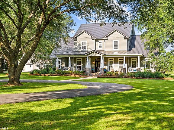 Extremely rare find in Fairhope! In fact, a Unicorn. At nearly 5 acres of perfection, this estate in Fairhope is only minutes from downtown, convenient to schools, shopping, Fish River, and the beaches! If you have dreamed of farm to table living, quiet and peaceful surroundings, country living with convenient location, THIS IS THE ONE! The owners thought of every detail when renovating this incredible home. With room to roam inside and out, this home boasts elaborate built ins, gourmet kitchen, lots of windows and natural light, TWO bonus areas upstairs, 2nd living quarters with private entry- great for Air BNB, in-law suite, guest quarters, etc. Gorgeous hardwood floors, brand new Trane AC system, tankless hot water heater, well system for irrigation and chicken coop water, and so much more. The backyard is an oasis with a gorgeous gunite pool and spa, outdoor BBQ area, fishing pond with pier, a charming tree house, raised garden beds, fruit trees, and a large workshop wired for 240 voltage and has a 2nd story for storage or could easily be converted into additional living space. There is a covered bay off the workshop with 3 car parking spaces- one tall enough for a boat or RV.