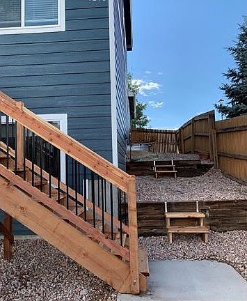 You won't find another house like this! Modern "HGTV inspired" decor will impress the design-savvy buyer in this newly-renovated home. Main level office has antique french doors, open concept kitchen boasts plenty of storage in 2-tone cabinets, sparkly white quartz countertops, brushed brass hardware and an island. New modern brushed brass light fixtures throughout. New stylish concrete tile, matching white quartz counters and matching fixtures in all bathrooms. Lots of character and custom design features! BRAND NEW finished walk-out basement features a second master suite with en suite half bath and large walk-in closet, as well as a large open rec room space perfect for a large sectional, pool table, or both! Brand new redwood deck in the backyard was just completely re-built from the ground up. Large backyard with phenomenal views of Rampart Range make this a perfect home for entertaining. School bus stop in front of house, family oriented neighborhood in a quiet cozy community. Brand new sod (1800 sq ft) being installed in backyard July 19th. Exterior paint is also brand new. New water heater installed in June. Note: Nearby train track is not a nuisance - trains are not permitted to blow horn through Monument unless something is on the track.