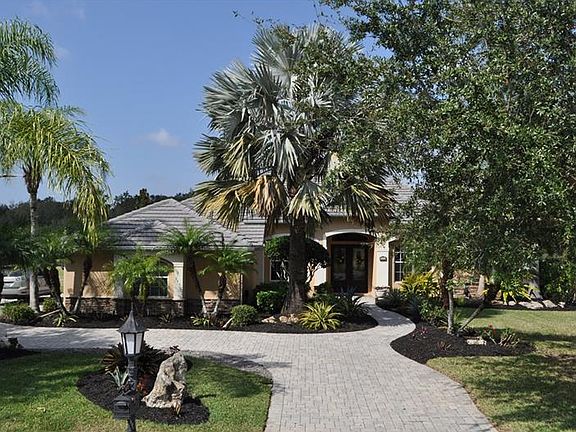 Former builder's model home on over half acre lot with lake and preserve views. Upgrades galore; crown molding throughout, 5.5" baseboard, paver brick circular drive, outdoor kitchen, granite counter tops in kitchen, laundry room with utility sink, outdoor speakers, whole house music with controls in each room, 5 separate AC zones to include an air conditioned oversized 3 car garage. The master bedroom looks out on the lanai, has wood accents and 2 closets leading to the master bath. The master bath features decorative tile floors, dual vanities, garden tub, and walk in shower with multiple shower heads. Den has gorgeous wood floors and built in desk and book shelves. The large bonus room with pool table and TV is ready for game night. Entertaining is easy on the oversized travertine tiled lanai with nebula lighting over the heated salt water pool and spa. The outdoor kitchen is great for family gatherings. There's a paved area outside the lanai which is terrific for enjoying the open air. Plenty of storage for your beach chairs and pool toys too. This home will not disappoint you. Call to schedule your private showing of this wonderful home!