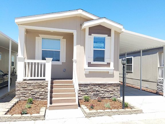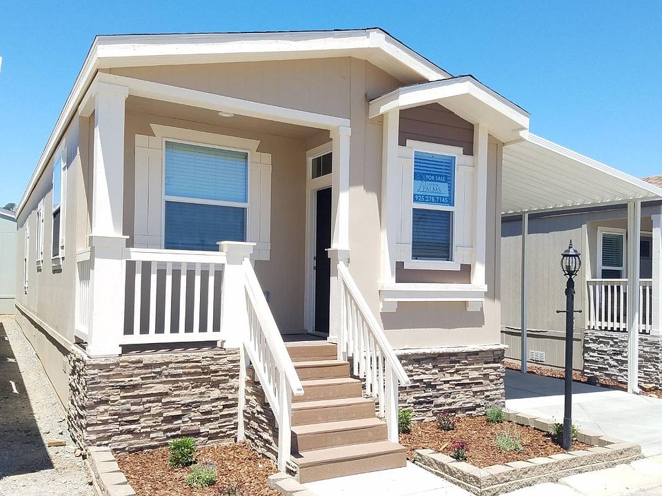 Check out this newly designed and newly constructed Golden West home! Efficient and extremely clever use of space--this is a dream home for those looking for a turn-key, move in ready home! Hardwood-like vinyl flooring throughout! No carpet maintenance required Pass-through style kitchen with all new stainless steel appliances--new fridge, gas oven/stove, microwave/hood, dishwasher, and disposal. Factory warranty included! Tons of upgrades--high 9' flat ceilings, quality blinds on all windows, and soft-closing hardwood cabinets! Plenty of kitchen counter and cabinets space and space to entertain. LONG covered driveway fits 3 vehicles. Enough space to fence off for pets or patio area. Video tour available upon request Offered by Horizon Manufactured Homes DL1273578 # PER038921CA A/B RAD1544789/90