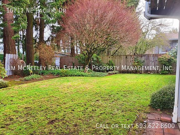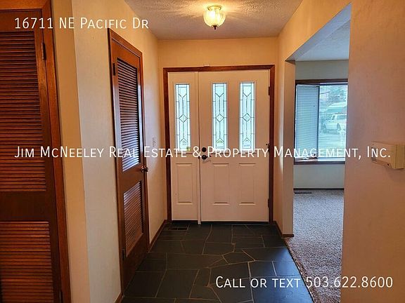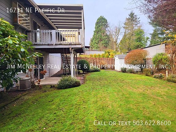 Please remove your shoes when viewing the property. Pets possible! Outstanding 4 bedroom 3 full bath Daylight Ranch comes with all the amenities. This nicely updated 2800-square-foot home has it all! Step inside this warm and inviting home, and you'll enjoy the newer carpets and paint. The home features a formal living room with a wood-burning fireplace, an updated kitchen, a dining room, and a huge laundry room with sink/tons of cabinets. Off the kitchen/dining room is a beautiful covered deck that will keep you dry while you barbeque in the winter and cool in the summer months. The main level has 2 full baths, 2 bedrooms, and a primary bedroom. Downstairs is another full bath and bedroom. If you like to entertain and need additional space, you'll love the huge family room with a wet bar and cozy fireplace. Looking for additional storage? The basement has over 300 square feet of storage. Off the family room is the slider that opens to another covered patio, and a huge private fenced backyard. Gardner's paradise! The backyard also has a tool shed. The home includes central AC, an oversized two-car garage with an opener, and a workshop. Directions: Gilsan north on 172nd, left on Oregon St, Right on Pacific Dr. (John) To Apply for This Property (Use links on listing on our company website - mcneeley . com. They may not appear on third-party sites) - Pay screening fee: $65.- If you have a pet, assistance animal, or to certify that you do not have animals: https jimmcneeleyrealestatepm. See pet policy on property listing) County: Multnomah Lease Terms: 12 Months Screening Fee: $65 Date Available for Viewing (subject to change): Now - Please inquire online for a self-guided tour Heat: Forced Air Heating AC: Yes Utilities included in rent: NONE Appliances: Range, Refrigerator, Dishwasher, Microwave, Garbage Disposal, Washer/Dryer HOOKUPS Community Features: NONE Year Built: 1969 Parking: Attached 2 car garage Fenced Backyard: YES Vehicle Restrictions: NO RV or boat parking allowed Schools: Verify online PET POLICY: Small pets under 30 pounds only. Security Deposit increased by $500 per pet Proof of Renter's Insurance will be required before move-in: JMRE must be listed as an Interested Party and have a minimum personal liability limit of $100,000.00 **Smoking is not allowed in any of our rental properties. Some properties may not allow smoking on the entire premises. This includes the garage + within 10 feet of the property ** INFORMATION NOT GUARANTEED AND SHOULD BE VERIFIED. SQUARE FOOTAGE IS APPROXIMATE & MAY INCLUDE BOTH FINISHED & UNFINISHED AREAS. SCHOOL AVAILABILITY SUBJECT TO CHANGE.