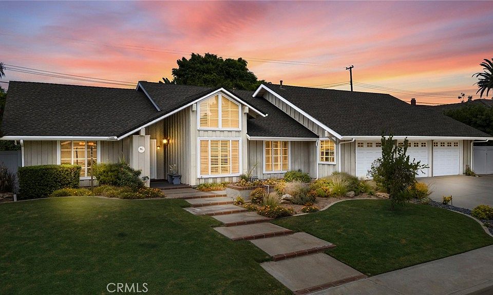 Welcome to your dream home! This stunning single-story residence boasts 4 bedrooms and 2 bathrooms, spanning 2,093 sq ft, and is nestled on a tranquil cul-de-sac in Yorba Linda. As you step through the front door, you are greeted by an inviting entryway that gracefully steps down into the spacious living room. Here, you’ll find high vaulted ceilings and large windows that flood the space with natural light, creating an airy and open atmosphere. Adjacent to the living room is the formal dining area, perfect for hosting dinner parties under the glow of a lovely chandelier. The seamless flow from the dining area leads you into the well-appointed kitchen, featuring ample cabinetry, stainless steel appliances, recessed lighting, and a picturesque view of the backyard through the window above the sink. The family room, just off the kitchen, is a cozy retreat with its high ceilings, a charming fireplace, and expansive views of the backyard. This space is ideal for relaxing evenings with friends. The primary bedroom suite is a true sanctuary, offering a vaulted ceiling, a separate seating area, and an ensuite bathroom complete with dual sinks and a large shower/tub combo. This private retreat provides the perfect escape at the end of the day. The home also includes three generously sized guest bedrooms and a remodeled three-quarter guest bathroom, ensuring comfort and convenience for family and visitors alike. Step outside to the beautifully landscaped backyard, where you’ll find a covered flagstone patio, perfect for outdoor dining and entertaining. The backyard also features a fire pit area, and an outdoor kitchen with a built-in BBQ, making it an entertainer’s paradise. Additional features of this remarkable home include a three-car garage and RV parking, providing ample space for all your vehicles and storage needs. Located in a desirable neighborhood, this home is close to great schools and offers plenty of shopping and dining options nearby. Don’t miss the opportunity to make this exquisite property your own!