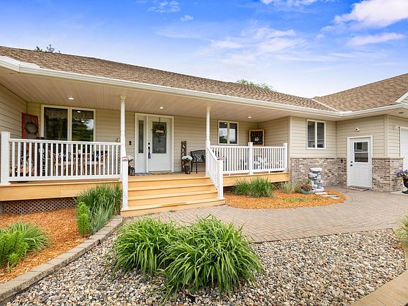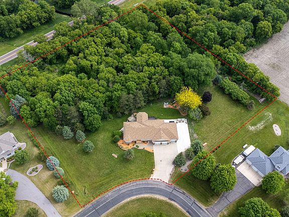 Welcome to this beautiful custom rambler nestled on a private 3.86 acre lot in the desirable Bernhagen Woods neighborhood. This home offers a perfect blend of modern updates and spacious design, ideal for both everyday living and entertaining. Interior Highlights: Open floor plan with vaulted ceilings for a bright and airy feel. Gourmet kitchen featuring granite countertops, stylish tile backsplash and new appliances. Four updated bathrooms with tile flooring, tile showers, and tub surround. Main floor primary suite with a luxurious bathroom and large walk-in closet. Nicely planned main level laundry room. Four-season room perfect for year-round enjoyment. Dedicated media room with equipment and furnishings included. Exercise room with gym equipment included. Exterior and Garage features: oversized heated and air conditioned 3 car garage with epoxy floor and floor drain. Covered front porch, maintenance-free deck and multiple patios ideal for outdoor entertaining. Hot tub included for ultimate relaxation. Private wooded backyard offering peaceful seclusion. Abundant outdoor parking space for RVs, boats, or recreational vehicles. This property offers an exceptional lifestyle with space, comfort, and privacy in a covered location. Don't miss the opportunity to own this rare gem!