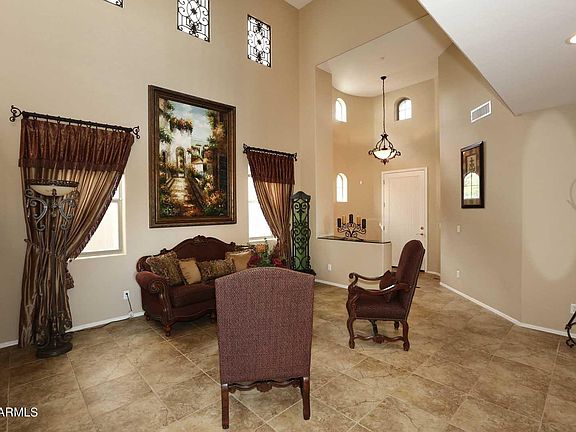 You can also relish breathtaking sunset vistas from your private balcony. For car enthusiasts, there's a three-car garage, and a brand-new water softener system was just installed for added convenience.The backyard is equally impressive, offering a lush grassy area and a view The house resides in a secure gated community. Proximity to schools, shopping venues, Loop 101, the local library, and the Aquatic Center makes this location all the more appealing.