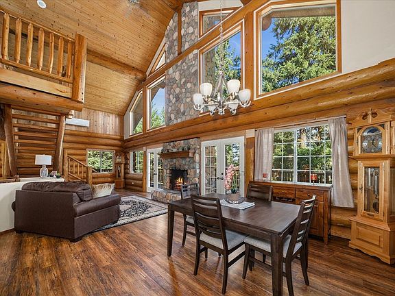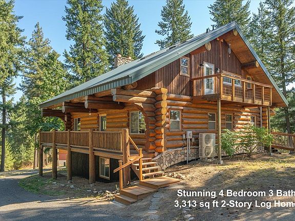 Stunning 2-story log home on a secluded 5.5 acre lot with a huge 30' x 44' shop! Conveniently located in the coveted Mead School District, just 5 minutes to Hwy 395 and 8 minutes to Wandermere shopping & dining! Access is by a freshly paved road that's well maintained in winter (primary school bus route). Property offers a perfect balance of nature, solitude and convenience! The great room has soaring cathedral ceilings and a magnificent stone fireplace surrounded by a wall of windows that draw in the beauty of the surrounding forest. Exquisitely updated kitchen with quartz countertops, Huntwood cabinets, stainless steel appliances and a large kitchen island with bar seating. Upper level master suite with cathedral ceilings, en-suite bath with jacuzzi tub, walk-in closet and private balcony with sunset views. Large daylight walkout basement with a spacious family room, 2 good size bedrooms, a den/office & an exquisitely updated bathroom. Radiant floor heat throughout + mini-splits for supplemental heat & A/C.