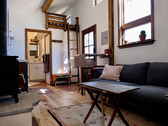 Welcome to Sierra Woods retreat an adjacent ADU to our main house ( 70' away) where our family of 4 plus 3 dogs and chickens live full time. The mountain cabin is a well appointed tiny house nestled on a private knoll top surrounded by a towering pine forest. Enjoy quiet and seclusion only 18 min from downtown Truckee and 35 minutes from Lake Tahoe. One main bedroom with king bed with sliding barn door and one loft bed ( full size bed) with full kitchen and bathroom. *Must be ok with dogs! First, Last months rent and security deposit due at signing. Furnished, 6 month lease starting Nov 1st, option to renew same cost for right person. Price is for 1 person. Two adults or adult plus child is +$100/month Renter pays 1/3rd of electrical bill, approximate $40-120$ / month. Water, driveway snow removal, firewood, internet and propane included! One small pet considered, No smoking, no parties, or making holes in walls. Owner needs access to cabin once every two months for maintenance of water system in mechanical room.