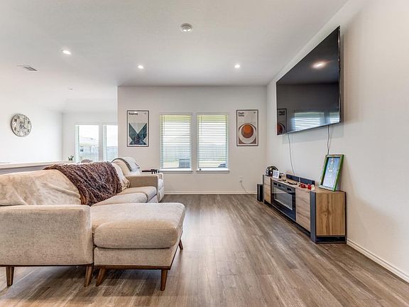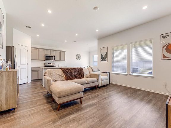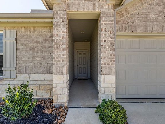 Beautiful 1 story home in the heart of growing Grand Pines community neighborhood. This pre owned gem offers all the benefits of a new home with neighbors already settled in and a true sense of community from day one. Walk into an open concept kitchen with a split floorpan for privacy. Kitchen offers beautiful island kitchen that over looks nice sized living room. Stainless Steel Appliances and Washer/ Dryer convey with home. Primary bathroom has a walk in closet with a tiled shower. Secondary bedrooms are on the other side of home with their own private restroom. Upgrades to the home inlclude: Primary bedroom flooring, glass shower door, glass bathroom door, jellyfish year round lights, french drain on side of home, water softener system for entire home, filtered drinking water system and gutters! Neighborhood offers community two parks and a community pool. This beauty offers more value for your money and is move in ready.