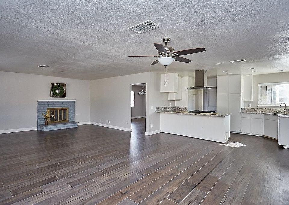 Step into the beautiful kitchen with stainless steel appliances, tons of cabinet space, breakfast bar and is open to the family room a fireplace perfect for movie night! The spacious bedrooms feature new carpet, ceiling fans, and roomy closet space. Enjoy the enormous backyard with a nice patio perfect for BBQ's and to relax during the Peaceful desert evenings.