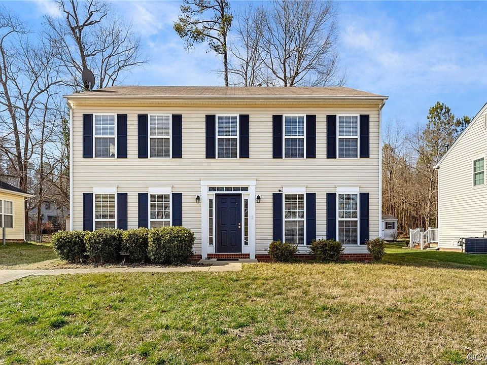 Welcome to 16718 Amherst Oak Lane, a charming home that offers both comfort and convenience! Upon entering, you're greeted by a spacious foyer with brand NEW flooring and a convenient coat closet. The formal dining room and sitting room offer the perfect settings for entertaining, while the large family room, complete with a cozy gas fireplace, is perfect for relaxing evenings! The spacious eat-in kitchen features beautiful granite countertops and a newer refrigerator and dishwasher! Adjacent, you'll find a powder room that is convenient for guests and everyday use. Upstairs holds three spacious bedrooms, two full bathrooms (hall bath was updated in 2018) and provides ample space for all! The primary bedroom is a serene retreat, complete with a large walk-in closet, ensuite bathroom featuring a stand-up shower and tub, and a cozy sitting room that offers versatility as a home office, gym, or extra closet space! Easy backyard access from the main level makes for optimal and smooth transitions when wanting to entertain or let your fur babies run loose! The detached shed is also a plus for all your storage needs! Located close to I-95 access, numerous restaurants, shopping centers, parks, and Ft. Gregg-Adams, this home offers the perfect blend of comfort, style, and accessibility.