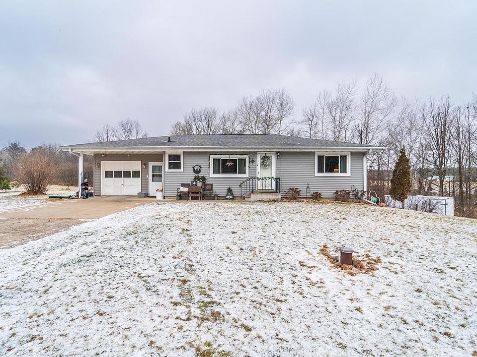 This charming home, situated on an acre of land at the edge of Ringle, is located within the DC Everest School District. Upon entering, you'll be greeted by an open-concept living room, kitchen, and dinette area. The main floor features two bedrooms, two full bathrooms, and main level laundry. The partially finished walk-out basement includes a family room, two additional bedrooms or an office space, a full bathroom, and a large utility room offering potential as a workshop or for extra storage. Key updates include a new water softener system (owned, installed by Maher), a natural gas furnace and water heater (2022), and a 2004 air conditioning unit, newer carpeting, oak hardwood, and vinyl flooring, the breezeway was recently finished with newer vinyl flooring/paneling, as well as updated fixtures and fresh paint in the kitchen. The home includes a refrigerator, microwave, dishwasher, and electric range. The freezer in the basement and movable center island in the kitchen is excluded from the sale.,The exterior features a garden shed, a covered patio, and a fire pit for outdoor enjoyment. The home offers a one-car attached garage with a breezeway connecting to both the main floor and the basement. Home was moved to this peaceful setting in the early 2000's. The roof shingles are approximately 10 years old, and the property includes a conventional septic system and a drilled well installed in 2004. The electrical system has been fully updated to a 100-amp service. This home offers a perfect blend of comfort, convenience, and potential!