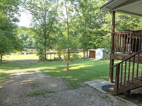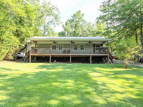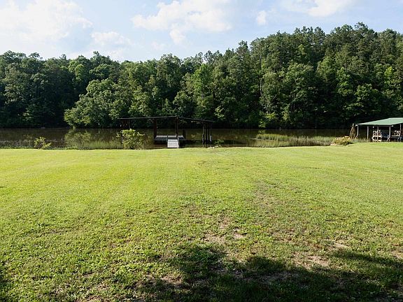Enjoy the peacefulness that Lake Wedowee has to offer in this cute cabin on the river! 3 bed 1 bath, full kitchen with granite countertops, quality cabinets, separate dining room, large laundry room, and spacious covered back deck. Flat lot overlooking seasonal water, covered stationary dock with covered slips, with connected water and electricity. Large pavilion with picnic table and stone firepit perfect for entertaining guests. Also includes a storage building with attached covered shed. All furnishings remain.