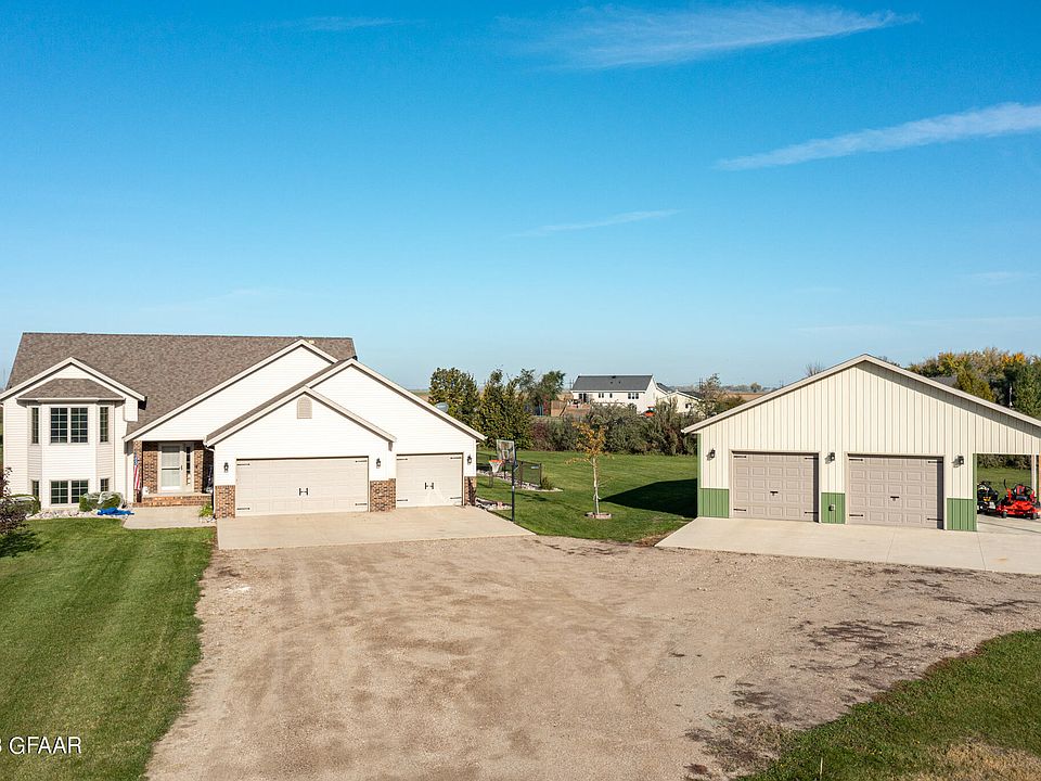 Country living just minutes outside of Grand Forks. This 4 bdrm, 3 bath split level home is set on just over 3 acres of land in a private development. This home has a large primary bedroom & on-suite bath w/soaker tub & shower. Downstairs is 3 good sized bedrooms all together. Plenty of parking in the attached 3 stall garage & even an oversized 720 sqft shop. Both of which are heated & finished HOA fee:$500. covers road maintenance; plowing, grading, and additional gravel.