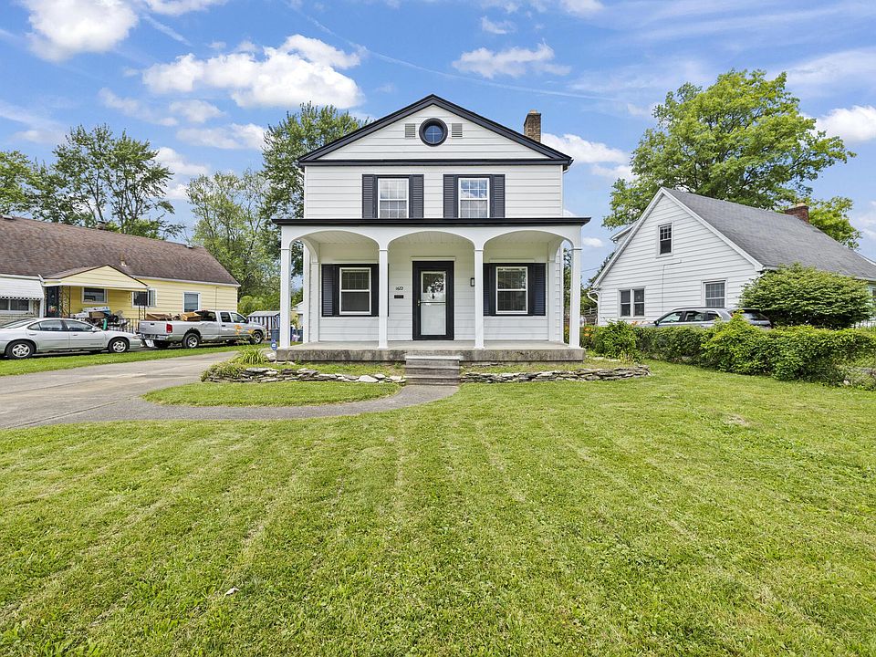 modernized kitchen has been completely remodeled for space and beauty featuring granite countertops and all brand new stainless steel appliances. Also featured is a large driveway leading to a detached, oversized 2-car garage with a second floor for extra storage. Along with a large patio with built-in benches that goes across the back of the house that is perfect for family and friend gatherings, this landmark home has a large front porch and sits directly across the street from Kenlawn Park, where families and friends can enjoy softball, basketball, picnics or the playground. You must see to believe.