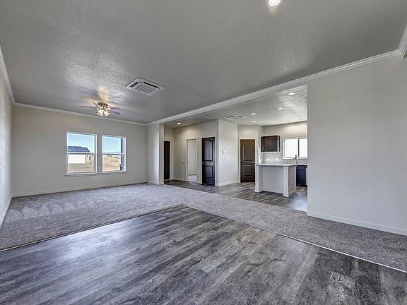 This newly built ranch-style home is waiting for you to move in! As you enter the home, you will find a large Living room with carpeted floors that is open to the Dining area and Kitchen. The Dining area has a walk-out to the backyard. The Kitchen has a large center island with counter bar seating, stainless steel appliances, stunning Brown staggered cabinets with crown molding, granite counter tops, tile back splash, and a large pantry* Off the entry is a private office* The Master Suite is very spacious, adjoins to a 4 pc Master Bath with walk in shower, double vanity, and a walk-in closet. There are 2 other bedrooms, a full bathroom and the laundry area. Everything is on the main level with no stairs! The 3 car attached has 2 openers. Whole house has electric mini splits for the heating/cooling.
