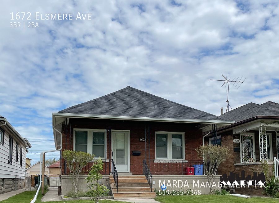 Welcome to your new home! This stunning 3-bedroom, 1.5-bathroom single-family house is perfect for families or anyone seeking comfort and style. Step onto the large front porch and into a spacious living room with beautiful dark, re-stained hardwood flooring and bright windows. The main floor includes two bedrooms with closets, a versatile den, and a large eat-in kitchen featuring white appliances, including a dishwasher. The full bathroom boasts a tub/shower combo, new cabinets, updated lighting, and modern shower hardware. The finished basement offers recessed lighting, a kitchenette, a half bathroom, laundry, and a spacious denperfect for extra living space or a home office. Outside, enjoy a fully fenced backyard with a patio area and a detached garage with a parking spot. This home is centrally located near Catholic Central High School, Jackson Park, Windsor Regional Hospital, and various restaurants, providing both convenience and accessibility. Additional features include a newer roof, window blinds, baseboards, and updated flooring in the basement and staircase. This is a non-smoking unit, and tenants are responsible for Hydro, Gas, Water, yard maintenance, and snow removal. First and last month's rent and a credit check are required. Professionally managed by MARDA Management, you'll benefit from a 24/7 maintenance line and easy rent payment options. Ceramic Floor Fenced Back Yard Fresh Paint In Suite Laundry Laminate Flooring Laundry Hookups Pets Allowed Washer/Dryer In Unit