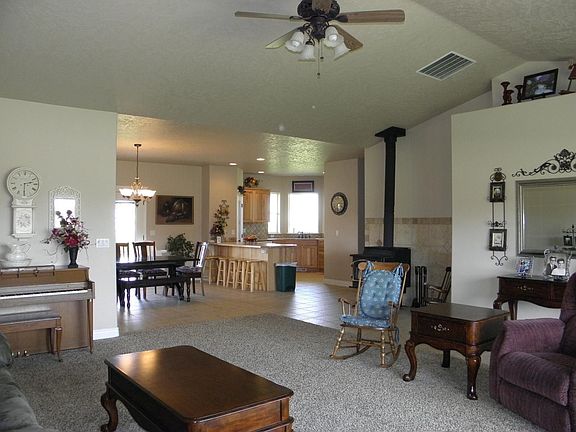 Fabulous setting at the base of the Owyhee’s. Custom-built 4/bed, 2.5/bath, 2900 s.f. home on 5 acres. Spacious living w/upper bonus room, 9-ft ceilings, tile flooring, vaulted ceiling in family rm, wood stove, and hickory cabinets. South-facing property has upgraded panel fencing, horse corral, 36x48 insulated shop w/18x48 lean-to and 12x16 shed. Manicured landscaping, garden area, children’s play set w/clubhouse, fire pit and picnic area, fenced pond, and oversized 30x30 garage.T-post fenced 3.5 acre-pasture w/K-Line system. Reverse osmosis water system. Washer, dryer and fridge stay. Wood stove in family room vents throughout home. Large 4th bedroom could be extra family room or den. Separate thermostat for bonus room. Plumbed for central vac. 36x48 shop has 220v, bathroom and shower. Watch the virtual tour: http://www.tourfactory.com/625804 Check out more listings: www.KathleenSellsIdaho.com
