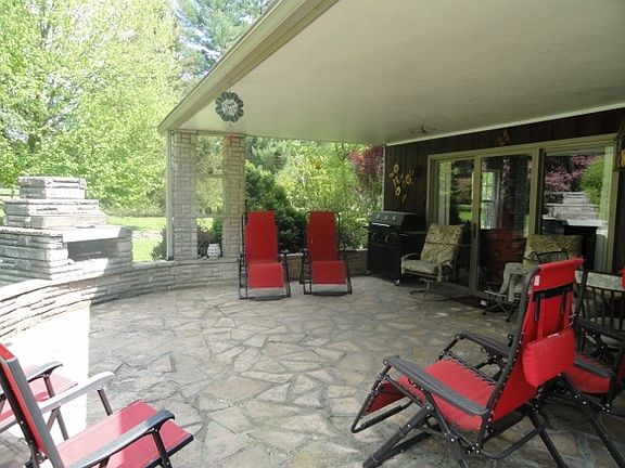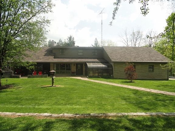 Exceptional 2 story, stone home on 76+ park-like acres! Beautiful rolling pasture & meadow with its very own creek! Secluded privacy, yet close to everything! 2 Bedrooms & 2 Bathrooms on main floor! 4 Bedrooms & 1 Bath upstairs! Ample space & possibilities in the partially-finished basement. Front & rear entry areas have slate flooring. You'll find gorgeous granite counter tops & a granite island in the large kitchen w/ stainless steel appliances! Relax or read your favorite book in the office/den area! Soak up the sun from the enclosed porch where the hot tub can be found! 2 car attached garage & other out-buildings! Efficient geothermal heating! Property offers potential area for a lake! You must see this well maintained home & its surroundings to enjoy all of its amenities! Call us today for your showing!