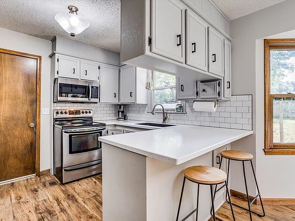 Welcome to this beautiful 4 bed, 2.5 bath ranch in the highly desired Westlink neighborhood. Upon entering, you'll notice the tasteful updates that maintain its charm. The remodeled kitchen features a subway tile backsplash, solid surface countertops, new cabinet hardware, and a modern sink and faucet. Adjacent is the dining room with an eating bar and a bay window overlooking the backyard. The living room, kitchen, and dining room all boast newer luxury vinyl plank flooring. The master bedroom offers a large closet, a stylish accent wall, and en-suite access to a full bathroom. Two additional bedrooms, built-in storage, and another full bathroom complete the main floor. The hallway bathroom includes a stylish vanity, ceramic tile flooring, updated lighting, and an onyx shower system. Downstairs discover a massive family room with a wood-burning fireplace and a wet bar. The fourth bedroom features a large walk-in closet, plus there's a storage room and a laundry room with a half bath! The backyard is perfect for entertaining with a large patio, built-in firepit, and mature trees for plenty of shade. This meticulously maintained home features a new privacy fence with steel posts (2021), a new sprinkler system (installed three years ago), a new heat pump (2020), and new siding on the storage shed. A home inspection has already done for your peace of mind. Don’t miss this one, schedule your showing today!