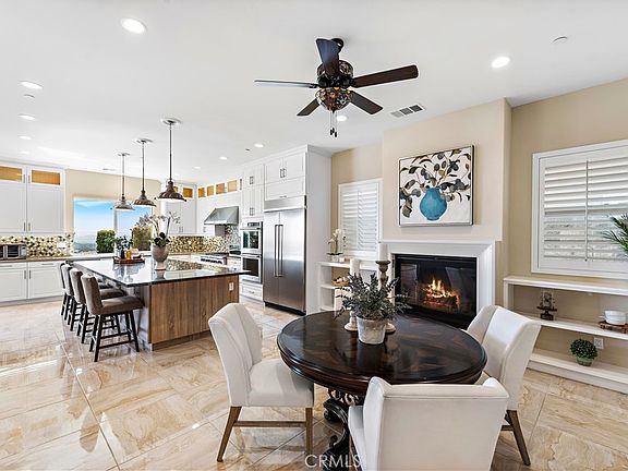 Welcome to the prestigious gated community of The Oaks in Portola Hills. Uncommon quality and impeccably maintained. This gorgeous 5 bedroom, 4 1/2 bathroom home boasts breathtaking panoramic views of the city lights, rolling hills, and Catalina Island. The open floorplan and soaring ceilings create a spacious and welcoming environment. As you enter the home, you will notice the stylish and elegant upgrades, high-end finishes, and efficient amenities, including Solar with backup battery and Water purifier and Softener system. The main floor features a private and spacious Master suite, oversized and elegant bathroom, and an abundance of cabinetry. The master bath features a walk-in shower, soaking tub, and plenty of space for relaxation. Also on the first level is an executive office or bedroom with ensuite bath, a separate powder room and large laundry room. The beautifully upgraded kitchen includes commercial grade stainless appliances, an oversized KitchenAid refrigerator, and “meteor shower” granite island with enough room to seat 6 comfortably, perfect for family and guests to gather in the heart of the home. The kitchen is adjacent to the Great Room which is in the center of the first level with custom built-in cabinetry, 2 story ceilings, Somfy motorized shade/screens to enjoy fresh air and views for miles. The kitchen opens seamlessly to the dining area with a cozy fireplace and a butler’s pantry area as well as a huge walk-in pantry with an additional refrigerator. Upstairs, are two additional bedroom wings, one is a spacious bedroom with ensuite. In between the wings, you'll find a huge loft, multi-purpose bonus room and the second wing features two additional bedrooms, adjoined by a Jack 'N Jill bath. Dine Al Fresco on the covered patio while you take in the views. The backyard amenities include a Built in BBQ, outdoor fridge, pristine hardscape, landscape and a pebble tec saltwater pool and spa. Its the perfect home to entertain, relax and soak up the sun. The garages are the ultimate Man Cave, thoughtfully designed, with epoxy flooring, custom cabinetry and overhead storage.Community amenities include- Iron Ridge Pool and Clubhouse, BBQ area, New dog park & Pickleball courts. Hiking trails & outdoor activities abound. The Oaks is a charming neighborhood with the friendliest of neighbors! Easy access to the toll way to reach the airport, shopping and beaches with ease. Plan your private tour to view this amazing home today!