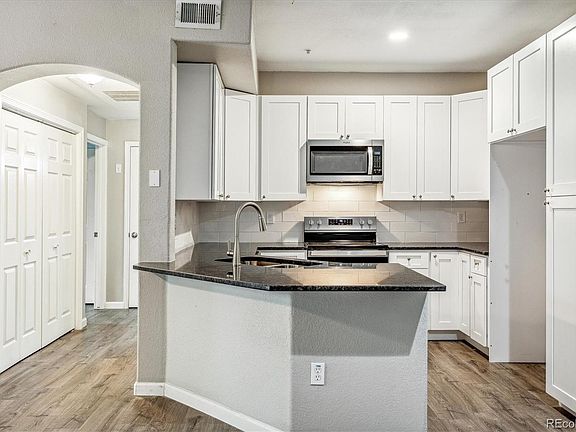 Remodeled & updated condo in The Pinnacle at Highline neighborhood! Designer interior colors with new interior paint & laminate flooring throughout. Kitchen includes new white shaker cabinetry with pull knobs, undermount sink, granite counters, full tile backsplash & stainless steel appliances. Remodeled full bath includes tile extending to the ceiling in shower, granite counters, undermount sink & white shaker cabinets. Satin nickel faucets, door knobs & ceiling fans. New 6 panel doors throughout. Walk in closet from bedroom. Washer & dryer closet. Large covered patio with storage room. Detached 1 car garage. Excellent location beside the Highline Canal Trail, McLellen Reservoir & Writers Vista Park. Close to shopping & grocery store. Easy access to Santa Fe & Broadway.