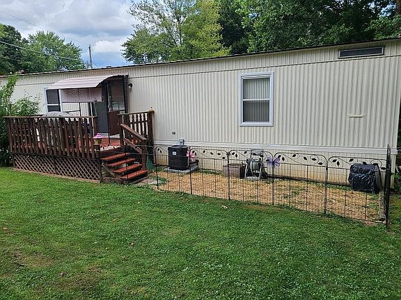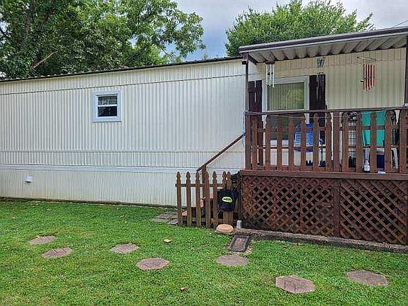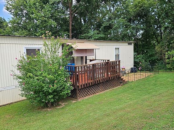 This well-maintained two bedroom-two full bath Sunshine mobile home features a metal roof, vinyl tilt dbl pane windows, patio doors, vertical blinds throughout, a front deck w/full awning and storage underneath, back deck w/partial awning and small fenced in area for your beloved pet,, 10x10 metal shed w/shelving, newer front screen door/metal door which opens to small foyer area. Living area has newer carpet (Mohawk--pet/stain resistant) and ceiling fan. Kitchen/dining area comes with appliances, lots of cabinets/storage, pantry, ceiling/exhaust fans. Utility off kitchen comes with newer washer/dryer and shelves for additional storage. Master bedroom has same Mohawk carpet, ceiling fan and walk-in closet w/shelving. Master bath has built in vanity, garden tub/shower, newer toilet, newer vinyl tile flooring and nice sized linen closet. Second bedroom has same Mohawk carpet, ceiling fan and two double closets w/shelving. Second bath has same built in vanity as Master, standard tub/shower, newer toilet and vinyl tile flooring. It also features newer heat tape and heating/cooling system. Comes w/extras and some furnishings are optional if interested.