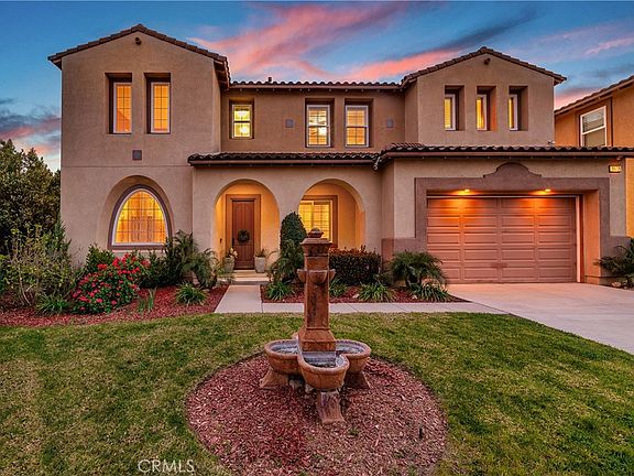 ***AMAZING NEW PRICE -- SAME STUNNING HOME!!!*** Perched at the END OF A CUL-DE-SAC with BREATH TAKING CITY LIGHT AND MOUNTAIN VIEWS, this stunning executive home WITH A BEDROOM ON THE FIRST LEVEL offers the perfect blend of elegance, comfort, and energy efficiency with a ***SOLAR LEASE PAID IN FULL*** for exceptional savings!!! Inside, a seamless flow connects the formal living room, private study, and elegant dining room. The bright, open kitchen features stainless steel appliances, an oversized refrigerator, double ovens, granite countertops, an island with a breakfast bar, and a butlers pantry. Overlooking the entertainers dream backyard, the family room is warmed by a fireplace, with a downstairs bedroom and ensuite bath nearby. Upstairs, a spacious loft leads to the 3 secondary bedrooms and then the expansive primary suite with a retreat, dual walk-in closets, and a spa-like bath. Step outside to your private backyard oasis, complete with a resort-style pool, spa, firepit, playground, outdoor kitchen, and lush landscaping perfect for family fun and grand entertaining. Situated on 750 acres, Lake Hills Reserve offers its residents an ideal mountaintop locale removed from city life, yet close to the many cultural and educational amenities of Riverside County and shopping. Residents enjoy the expansive open space, the HIGHLY rated Lake Hills Elementary and a private residents club including a swimming pool, playground, park and an open-air fireplace pavilion. This is an ideal location for commuters as the 91 Freeway and Metrolink are both close by. Are you ready for the Lake Hills Reserve lifestyle?