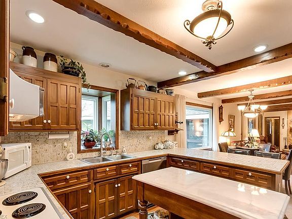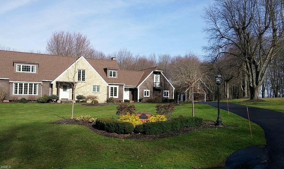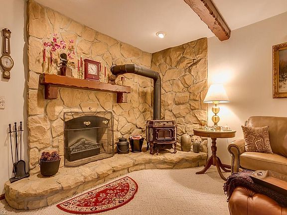 Beautiful tudor style home with quality building details throughout on 5 wooded acres in Silver Fox Estates. Large rooms, beautiful new Renewal by Anderson windows and exterior door and window trim. Newer stainless steel kitchen refrigerator and dishwasher. Enjoy relaxing and entertaining on the attached enclosed patio with gazebo. Huge 30 x 50 outbuilding with electric & concrete floor plus a storage shed and attached garage. Seller has greatly enjoyed this home and maintained it well. Freshly painted in several rooms. Large attic space for storage or finishing, accessed by garage or upstairs bedroom. Geauga County septic passed inspection. Stake survey completed and boundaries are marked with flags. Level property with plenty of driveway space. Well lit basement area with finished floor and ceiling and plenty of natural light. Fireplace in family room and Hearthstone stove, woodburner in basement. Newer furnace and central air. Efficient electric heat. Natural gas is not available at street.