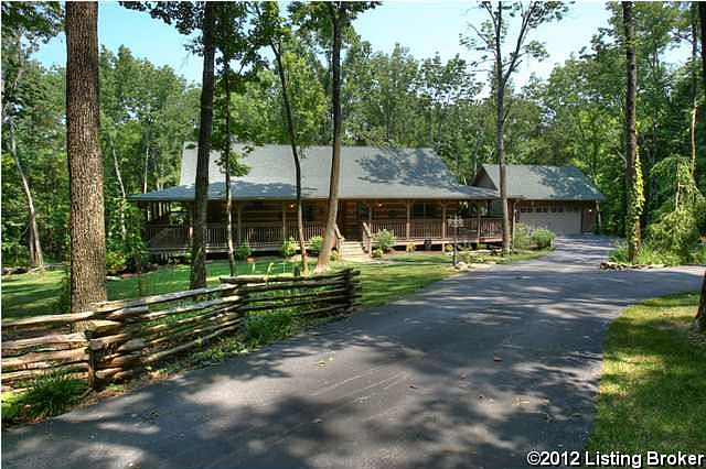 Come see this wonderful 5 year old log home on 6+ acres in a log home community of 14 home sites on 90+ acres! This amazing home features a wraparound porch, 4 BR, 3 full BA, 4,000+/- finished sqft, walkout basement, 2 car attached garage, 3 car detached garage/workshop and a small cabin in the woods that could be used for a children's play house or a getaway in the woods! The main floor of the home has a spacious great room with vaulted ceilings and fireplace open to the dining area and kitchen with custom cabinetry; a sunroom with vaulted ceilings overlooking the back yard and woods; the great room, kitchen and sunroom all have hand scraped hardwood floors; large master bedroom with vaulted ceiling and private bath with double vanities, corner tub, 2 person walk in shower with double shower heads and an over sized walk in closet; the guest bedroom is also over sized with vaulted ceilings; guest full bath with tile flooring and a laundry room that double as a mud room between the house and the 2 car garage. The lower level features 9' ceilings though out; large theater/entertain room (14'x30') that is open to the lower level family room with creek stone fireplace that allows access to the screened in patio; one bedroom features in lay wood ceiling; the fourth bedroom room has a large closet; finished office room and a full bath with tile flooring! The detached garage is finished and has heat and air. The home has a duel fuel HVAC system. The home was built by Forgotten Times Log Homes and features 12"x6" up to 46' lenght white pine. The grounds have meticulously maintained! This home is a rare find!