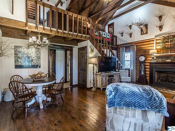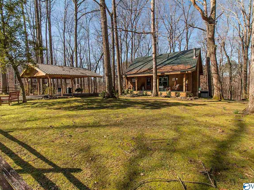 This is an absolutely amazing house on a beautiful wooded lot at the end of a very quite street. Enjoy the great front porch or the wrap around back porch overlooking the backyard. Wood flooring in the living room, dining area, and in the bonus room. The home features a timbered roof with vaulted ceilings and exposed log beams. A large master with vaulted ceilings and exposed beams and 2 additional bedrooms with a large bonus room that could be used as a office or a nursery. In the last few years several updates were made: Metal roof, central unit, windows replaced, and a complete remodel of the kitchen with granite. Detached storage building with electricity and two 2-car carports.