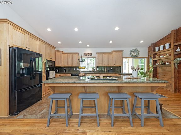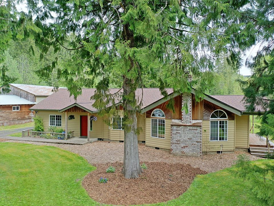 ***THIS IS THE ONE!*** One-of-a-kind property with spacious single level home on 5.79 useable acres, complete with cross fenced pastures, pond, barn and one-bedroom ADU. Enter the home to find hardwood floors and vaulted ceilings and a living space with kitchen featuring tile floors, granite countertops, plenty of storage in the cabinets, built in oven and microwave, cooktop in the large island with eat area that opens to an ample-sized dining area with large windows and woodstove. Custom cedar wall with built-in shelves up the vaulted ceilings on both sides leading into the living room with beautiful wood beams, brick work for the pellet stove and french doors to the outside deck. Primary suite is open and bright with on same side of house with similar french doors, large walk-in closet as well as sitting area, bathroom suite with shower/ tub combo. Bedroom 2 and 3 of approximately equal size on the opposite side of the home with hardwood floors, closets with organizers. Laundry room and full bathroom as well. This home has four sources of heat including a cozy woodstove, pellet stove, propane furnace and zonal heating. Two electric water heaters provide an ample supply of hot water to the main house. Out the back is the 21x24 deck to enjoy views of the cross fenced pastures ready for farm animals, raised garden beds in fenced area and thoughtful landscaping to enjoy nature. Well-maintained barn provides an area to store what is needed to keep the property running with poultry coop and pen as well as an enclosed room and several areas from varying projects. Attached to the barn is a 625 square foot additional dwelling unit with one-bedroom, spacious bathroom and open kitchen, dining room, living room area as well as it's own water heater. Plenty of parking outside for boats/ RV as well as occupants & guests. Located about 3 miles outside the charming town of Vernonia, come enjoy small town and country living today!