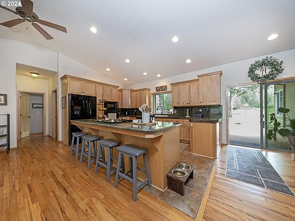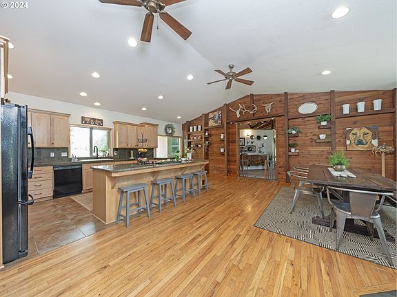 - Features: Ceiling Fan, Hardwood Floors, Kitchen Dining Room Combo, Vaulted Ceiling, Wood Stove