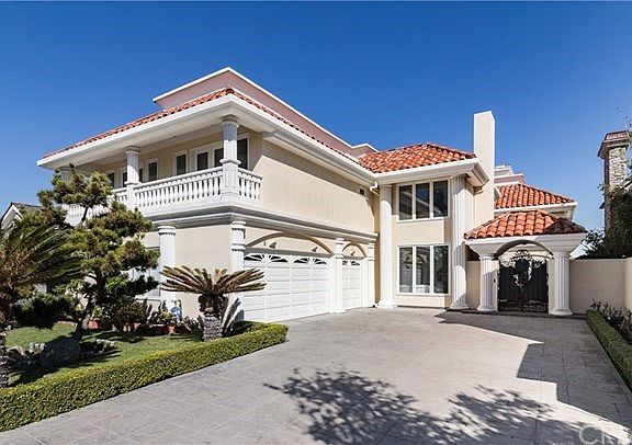 This spectacular waterfront estate situated in prestigious Coral Cay community in Huntington Harbour, on the MAIN channel, has direct access to the ocean and Private dock spaces for 3 boats. A koi pond with waterfall in the yard. This gorgeous Mediterranean 5828 sqft custom home features an open floor plan, elegant high ceiling entry and skylights through out. The layout included a formal living room, family room, formal dining room, a casual dining area and 4 granite fire places. The home boasts 6 bedrooms, 2 of which are spacious master suites with their own jacuzzi tub and sauna/shower and a balcony with view of the main channel. The large gourmet kitchen showcases a granite island equipped with a 6 burner stove, double oven, sub-zero refrigerator, granite countertops. The house also has 3 separated HVAC and central vacuum system. A short stroll to Tennis court and private beach. Residents enjoy the safety and security of the 24 hours guard- gated. It's walking distance to PCH, sandy Sunset Beach.