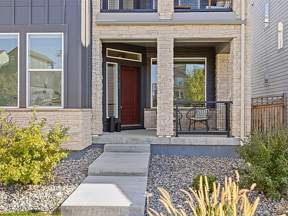 Rate buy down available! Enjoy the benefits of new construction without spending years living in a construction zone! This home was built by David Weekely Homes and completed near the end of 2022. As you step inside this three story stunner, you're greeted by tall ceilings and two ground floor bedrooms. Both with open and oversized West facing windows. Use one as an office and the other features an en suite bathroom that is perfect for guests. On the second floor you'll check off all the boxes on your wishlist. Soft close cabinetry, ample storage, stainless steel appliances. But you'll be in love with the designer selections like a wide plank light finish luxury vinyl flooring, white quartz counters with tasteful veining, and hand picked light fixtures over the kitchen island and dining room. The West facing windows provide a tremendous amount of depth and privacy to the home at all times as you look out on neighborhood green space and towards the foothills. The large living room is washed in natural light and leads to the second story patio area for seamless indoor outdoor living and entertaining. A privacy hallway off the kitchen leads you to the dedicated laundry room with new washer and dryer, a guest powder bath, and the Primary Suite. The Primary Suite features dual closets, a large walk in shower with custom shower glass, custom tile selections, and custom vanity lighting. The third story provides a fourth bedroom with a dedicated mini split system for independent heating and cooling, a fourth bathroom, and large flex area with two pre wire walls for entertainment and versatility for home furnishing, and the show stopping third floor patio. Bring all your toys as the two car garage off they alley provides ample storage and privacy while maintaining the charm of the front of the home. Low maintenance yard is an understatement with a combination of natural grass and xeriscape materials. Enjoy todays trails and future connections as the area grows!