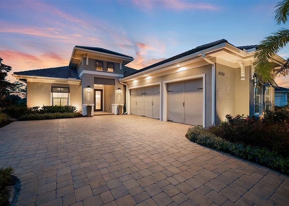 Welcome to 16722 Verona Place, an extraordinary luxury residence located in the prestigious gated community of The Lake Club in Lakewood Ranch, FL. Note: LWR Stewardship I&S Fee (CDD) was paid in full by Builder. This stunning home offers 3 bedrooms, 3.5 bathrooms, and a dedicated office or den, all designed with meticulous attention to detail. The expansive, open concept living space features soaring 10 - 12' tray ceilings and 12' x 10' stackable sliding doors that seamlessly blend indoor and outdoor living. The gourmet kitchen boasts quartz countertops and premium finishes, flowing into a spacious dining and living area with breathtaking views of the lanai, custom outdoor kitchen and a serene preserve backdrop. Step outside to your private oasis, where travertine floors, a saltwater mini-lap pool with a sun shelf, and a spectacular fire table with seating for 8 create the perfect setting for relaxation and entertainment. The custom outdoor kitchen, complete with a grill, side burner, sink and bar fridge, ensures that al fresco dining is always a pleasure. The primary suite is a true retreat, featuring a lavish ensuite bathroom and double walk-in closets. Guests will also enjoy their stay in comfort and style with beautifully appointed guest bedrooms and bathrooms. A triple car garage provides ample space and convenient access to the home. Residents of The Lake Club enjoy access to world-class amenities, including a resort-style pool, fitness center, pickleball and tennis courts, a dog park, playground, basketball court, and an exclusive clubhouse with a restaurant and bar. This home is a rare gem in one of the most sought-after communities in Lakewood Ranch. Don't miss the opportunity to make it yours today!