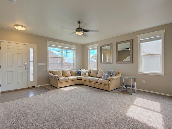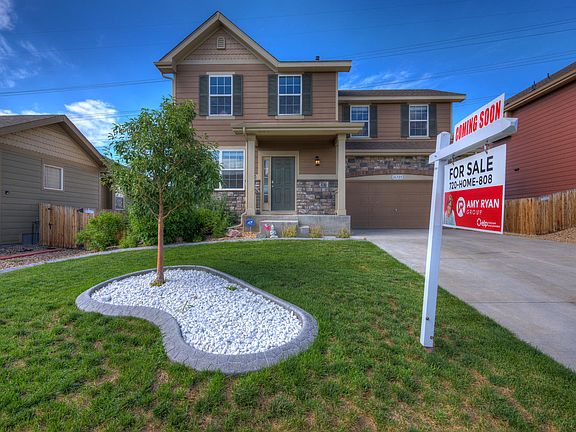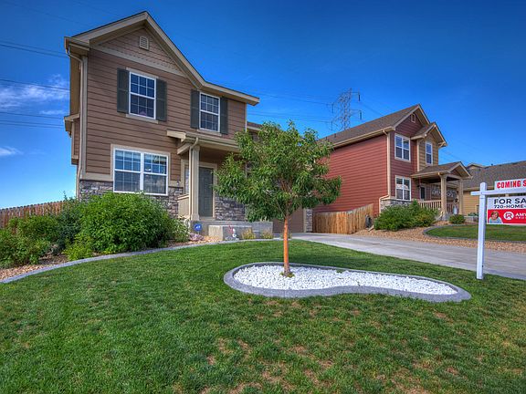 Amazing unobstructed mountain views with no back neighbors in this gorgeous home in desirable Buckley Ranch neighborhood. Walk up to a nicely landscaped yard with stamped concrete edging. Main floor has a large open living area open to an upgraded kitchen with tile backsplash, granite counters and stainless appliances. Upstairs boasts four bedrooms and two full bathrooms. Master bedroom is bright and open with a large walk in closet and master bathroom is roomy with double sinks. Lots of extra storage space in the two car garage. Close to walking trails, elementary and middle school, grocery store and restaurants. Easy access to C470 & DIA. Don't miss this great opportunity to own a lovely home!