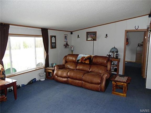 A gem with a view is one way to describe this very clean manufactured home that sits on a 6.77 M/L acres close to Richland. Enjoy warm summer evenings on the covered front porch. Step into the large living room boasting plenty of seating, with a view of the kitchen for relaxed entertaining. The kitchen features lots of cabinet space, vinyl floors for easy cleaning, white appliances and breakfast bar. Continue into the convenient laundry area with a door to the small porch and the expansive yard. The carpeted master bedroom includes a master bath with corner tub. The second and third bedrooms also include carpeting for comfort. This home also has a wonderful family room addition that is located off the living room. The generous family room is comprised of vinyl floors, light paneling and several windows allowing lots of natural light. Also enjoy the fantastic views featuring a spring fed pond, wooded and open areas. The outbuildings also provide extra storage space.